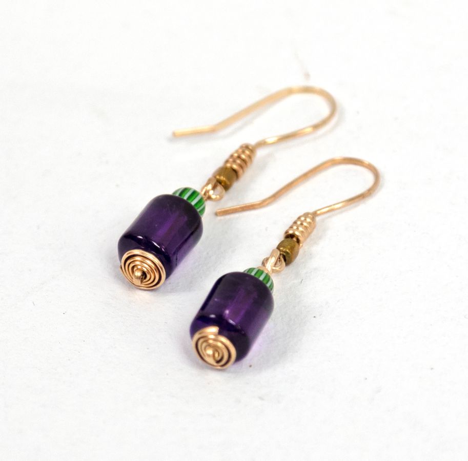 gold fill wire, roman brass beads, african trade beads, amethyst