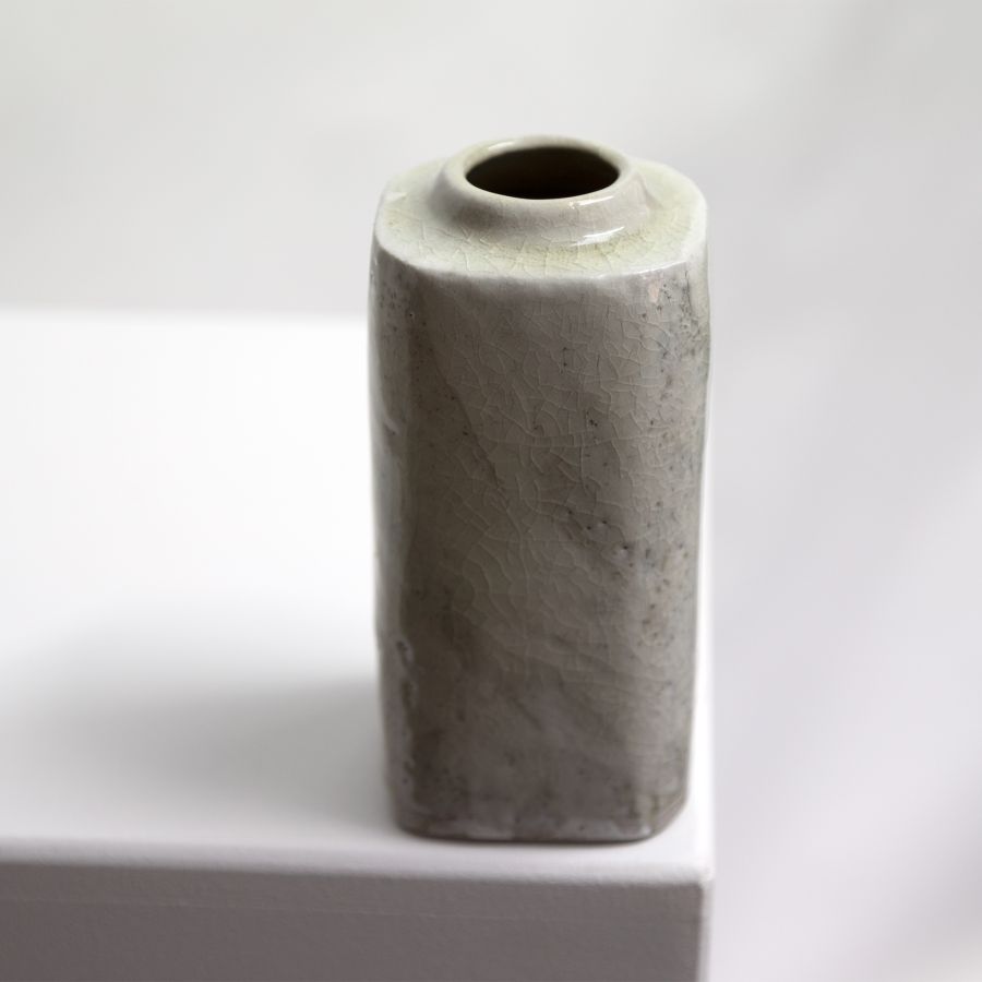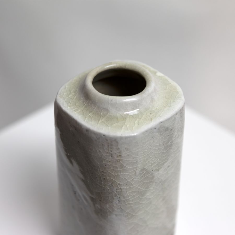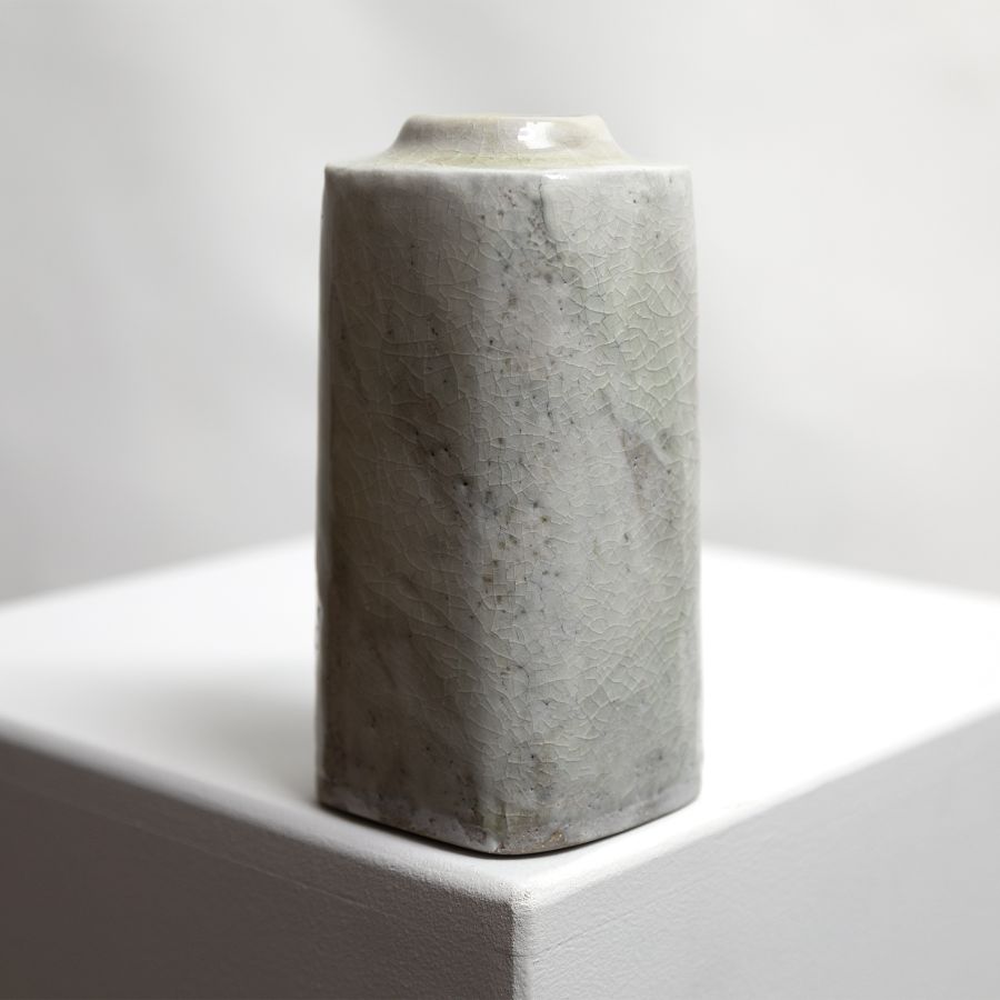thrown & altered stoneware, celadon crackle glaze over porcelain slip