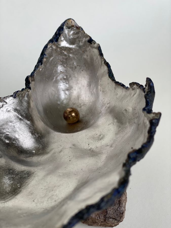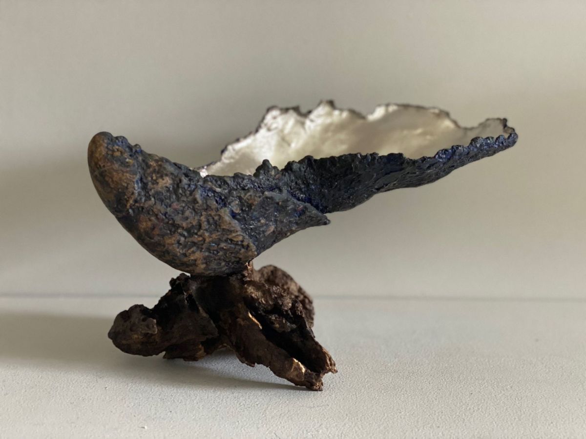 oil gilded palladium leaf, water gilded gold leaf, pigmented jesmonite and wood from the forest