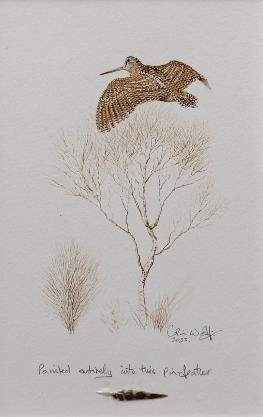 watercolour painted with a single pin feather
